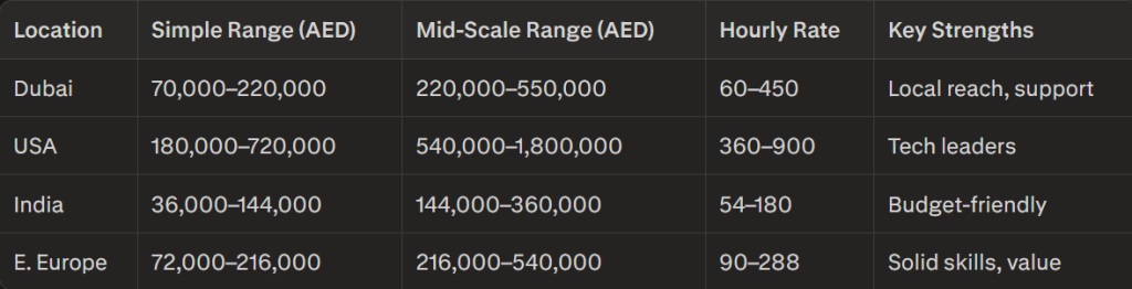 - Team Expertise: Beginners AED 60–150/hour to pros AED 300–450/hour, expats bump costs 10–15%.